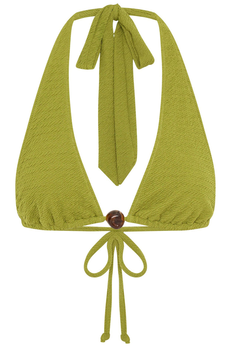 At the center of the WREN BIKINI TOP is a custom bead, giving it a distinctive edge that makes this piece truly stand out. The halter design exudes a perfect balance of playful charm and sophisticated elegance. With adjustable straps, it offers a tailored fit for both comfort and style.