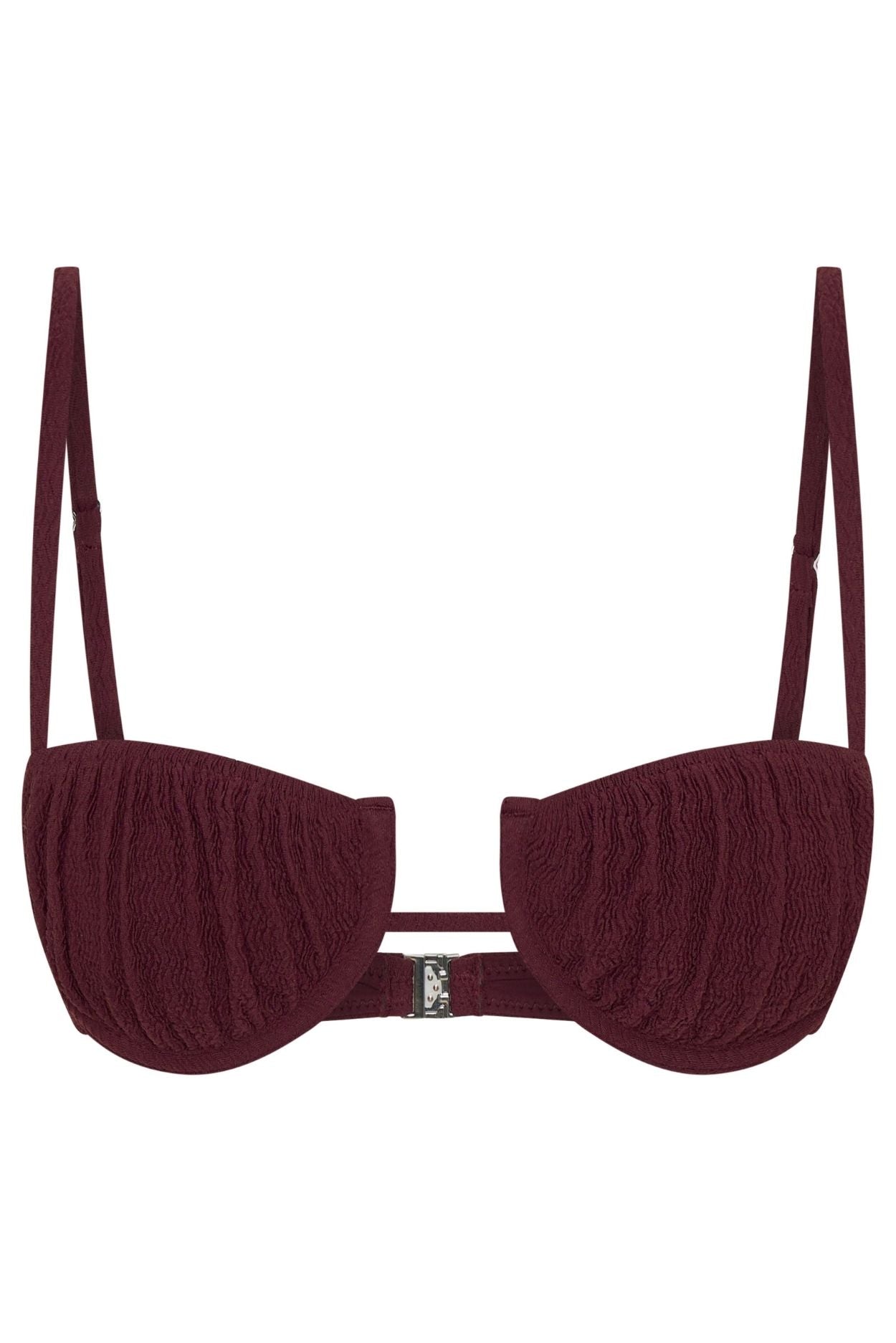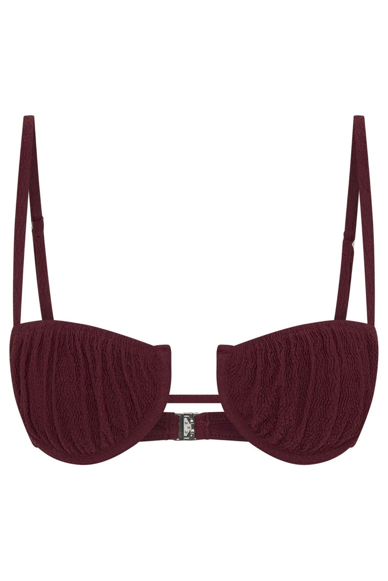 A summer essential that works as hard as you do. The Sabrina Top features an underwire design that lifts and enhances your bust's natural shape, while the textured crinkle fabric and ruched cups add effortless dimension. Minimalist in silhouette, bold in impact. The bikini top you'll reach for all season.