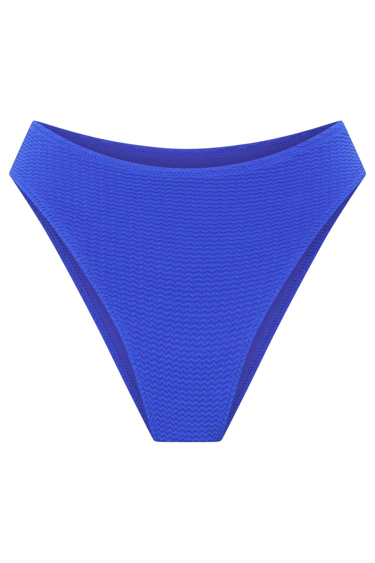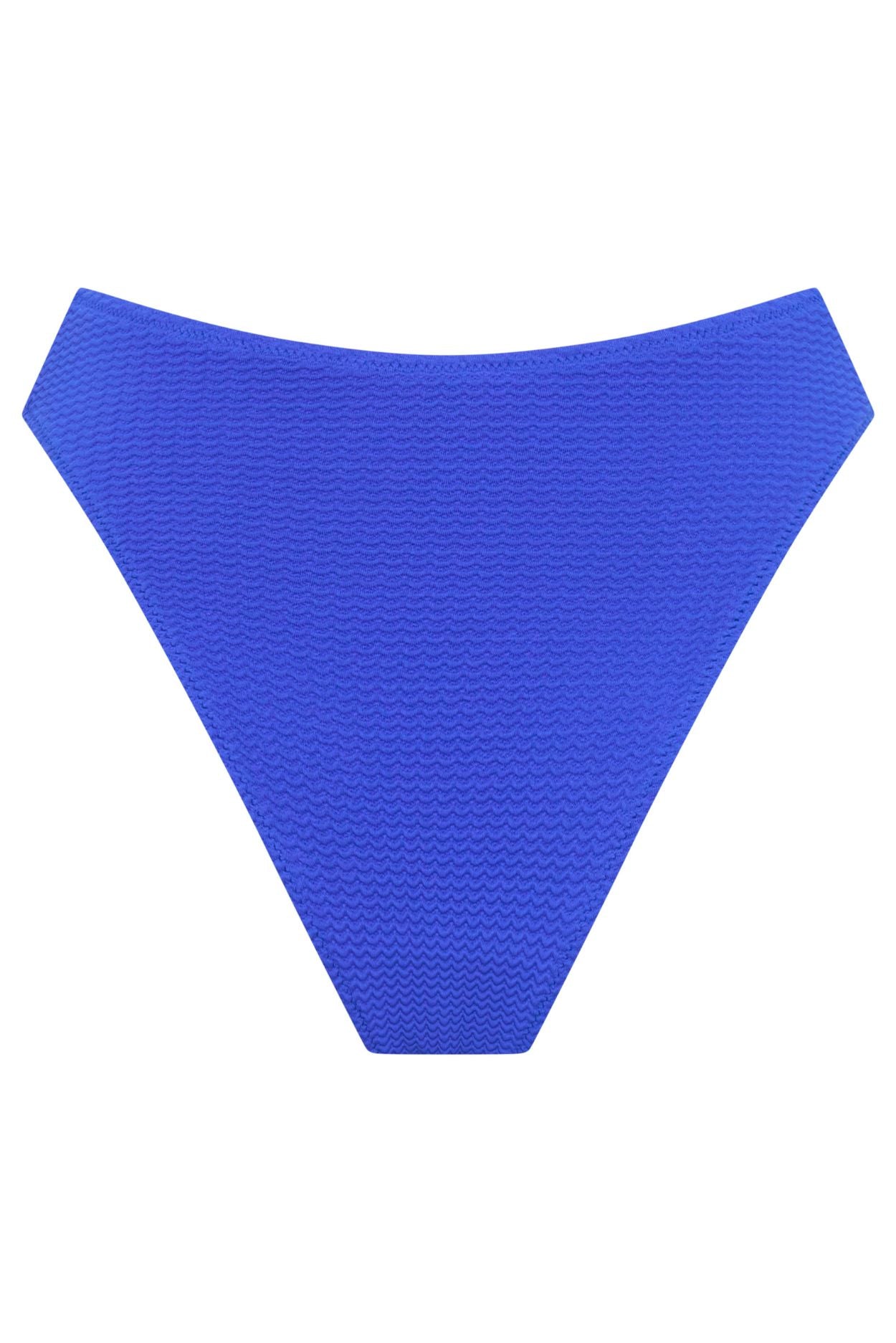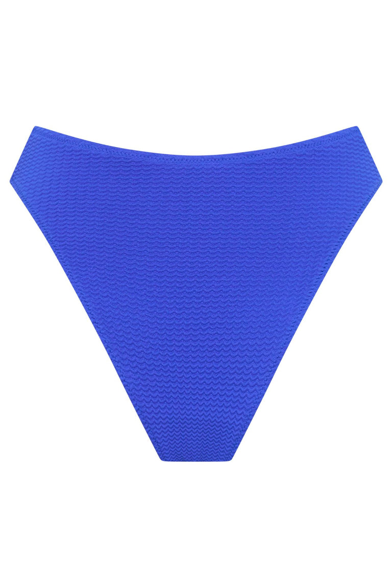 Complete your swimwear look with the Fallon Bottoms in vibrant cobalt blue. These high-waisted, high-cut bikini bottoms combine sustainable materials with a flattering silhouette for confident, comfortable beach days.