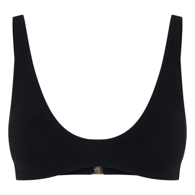 Elevate your swimwear collection with the Fallon Top in classic black. This premium bikini top combines sustainable materials with thoughtful design for all-day comfort and support, whether you're lounging poolside or enjoying beach days.