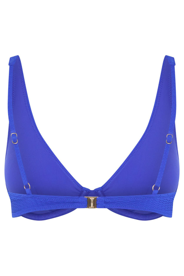 Elevate your swimwear collection with the Fallon Top in vibrant cobalt blue. This premium bikini top combines sustainable materials with thoughtful design for all-day comfort and support, whether you're lounging poolside or enjoying beach days.
