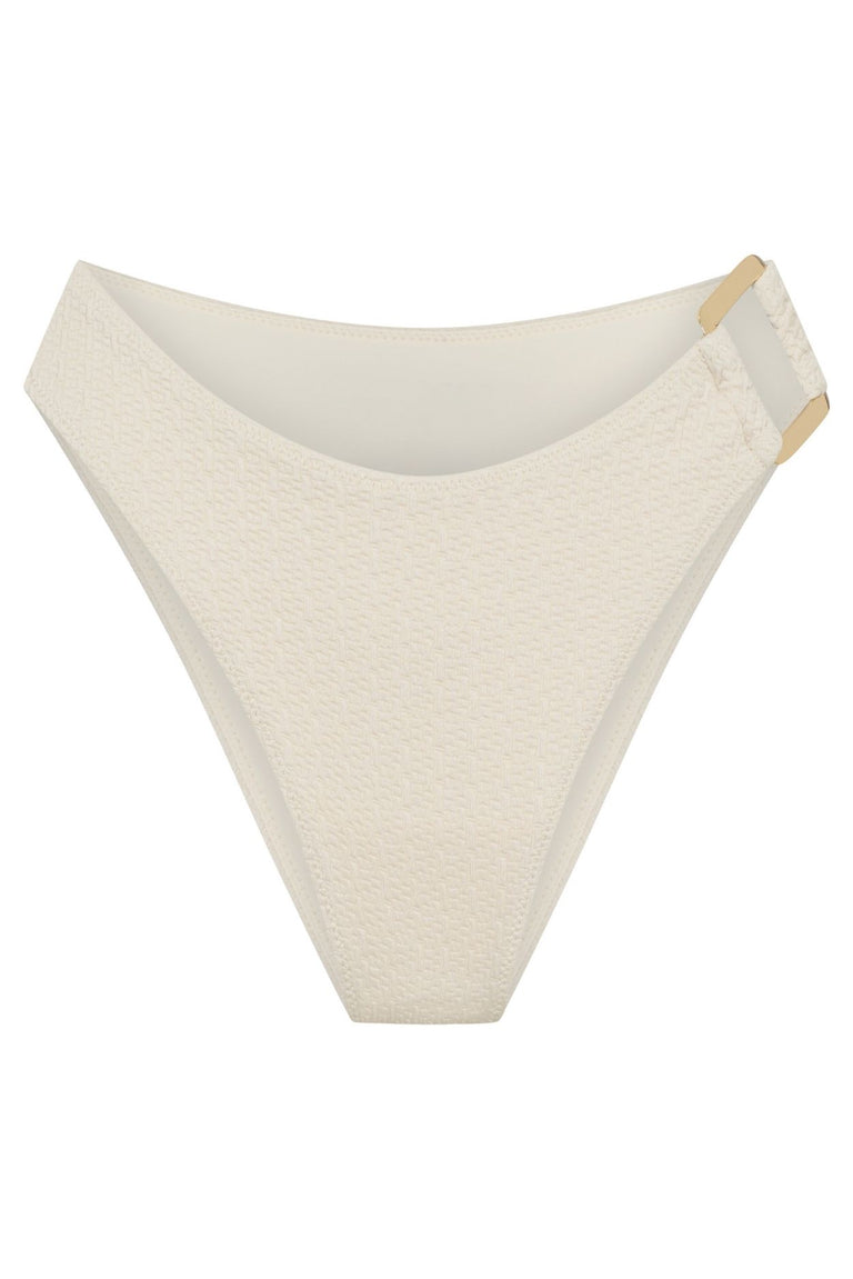 Say hello to your new swim essential. The Maeve Bikini bottoms are designed to elongate the legs and flatter your natural shape with their high-cut silhouette and sleek, minimal coverage. The standout feature? A statement gold square hardware detail that adds a touch of elevated edge to this modern classic.