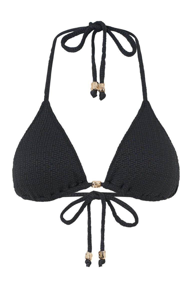 Minimalist with a touch of charm, the Darcie Bikini Top is your must-have summer staple. This classic triangle silhouette is elevated with a delicate beaded centre detail, adding a subtle statement to your beachside look. Designed for adjustable comfort, it features sliding cups and ties at the neck and back, giving you the flexibility to wear it your way.