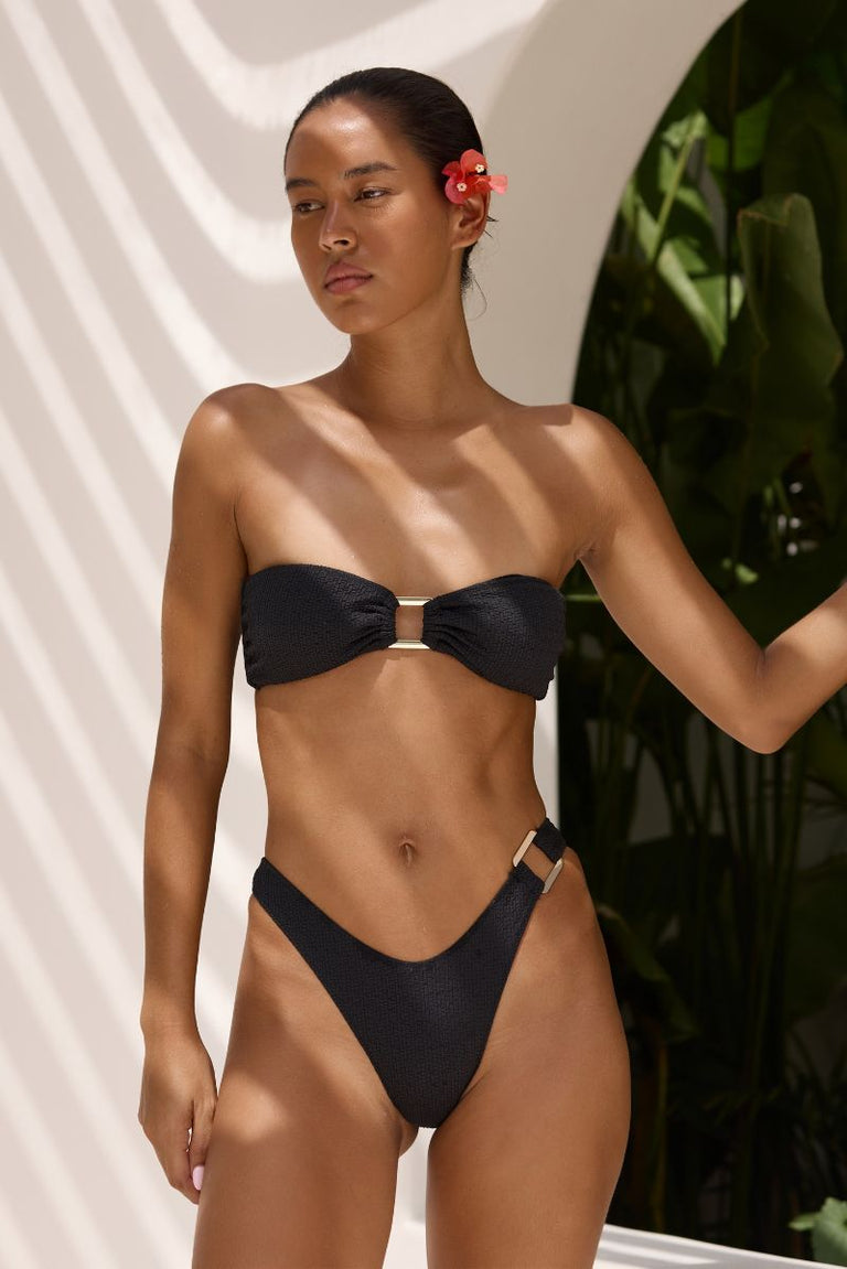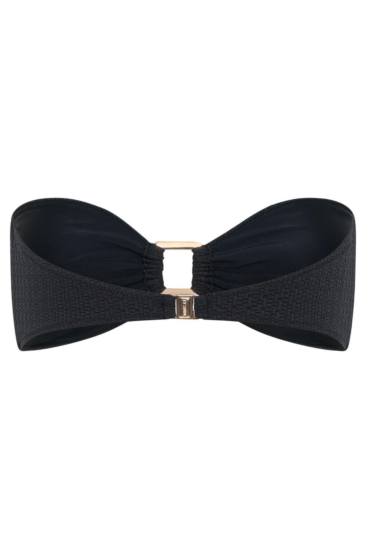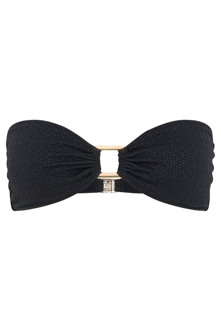 Elevate your swimwear game with our Maeve Bikini Top, designed for the modern minimalist who loves a touch of glamour. A sleek, strapless silhouette with a statement gold square hardware detail at the center front, this piece combines effortless style with refined edge.