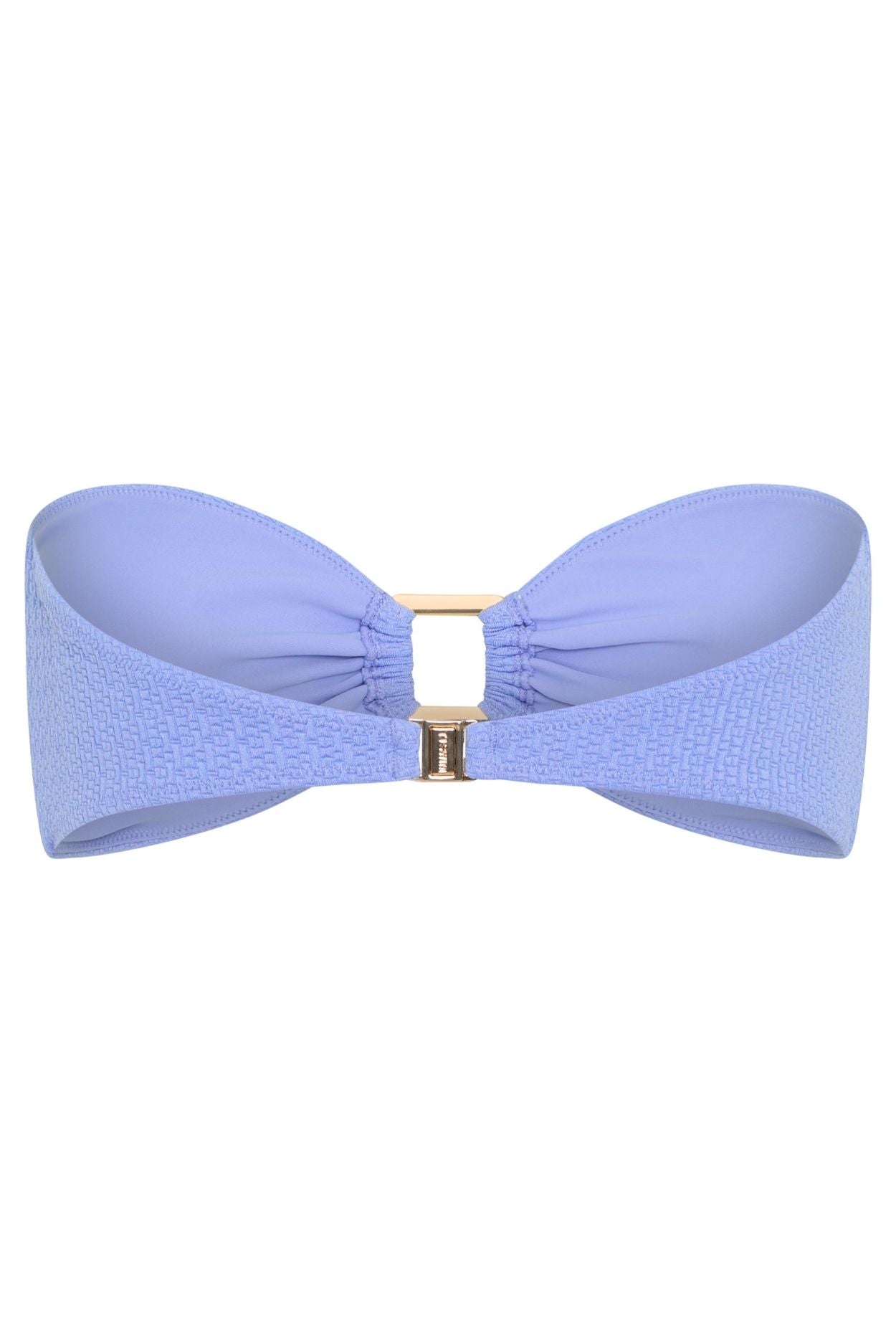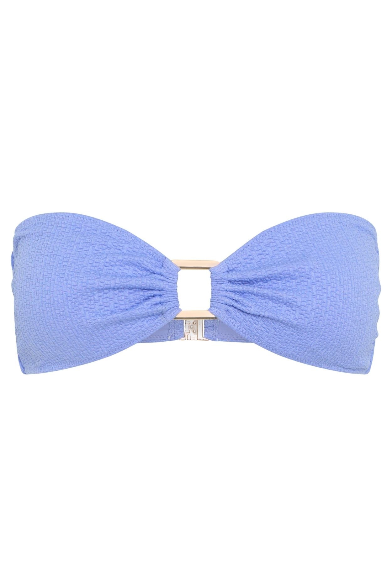 Elevate your swimwear game with our Maeve Bikini Top, designed for the modern minimalist who loves a touch of glamour. A sleek, strapless silhouette with a statement gold square hardware detail at the center front, this piece combines effortless style with refined edge.