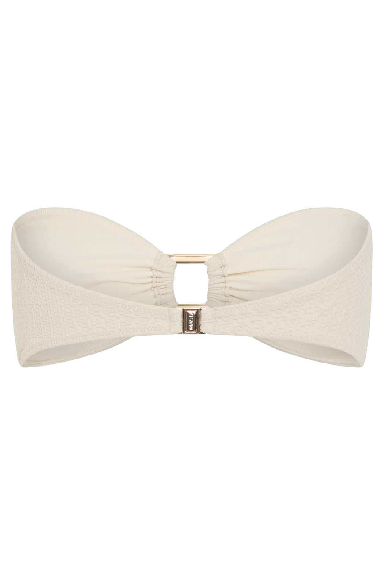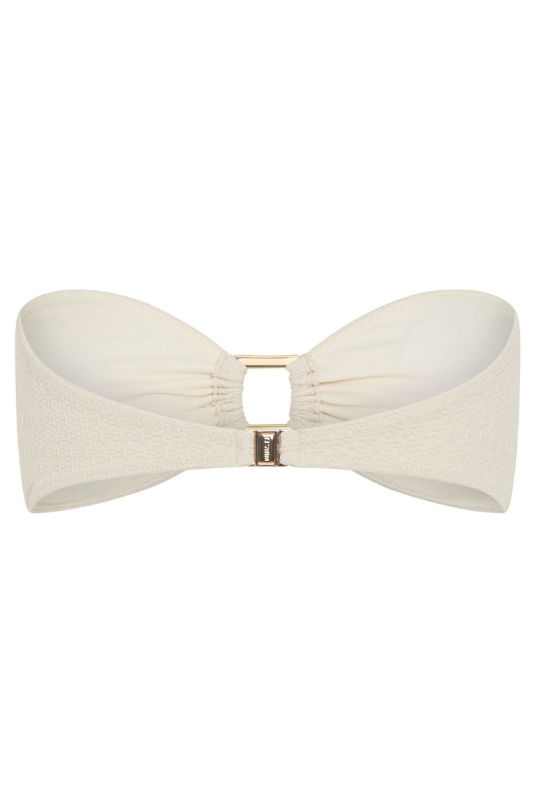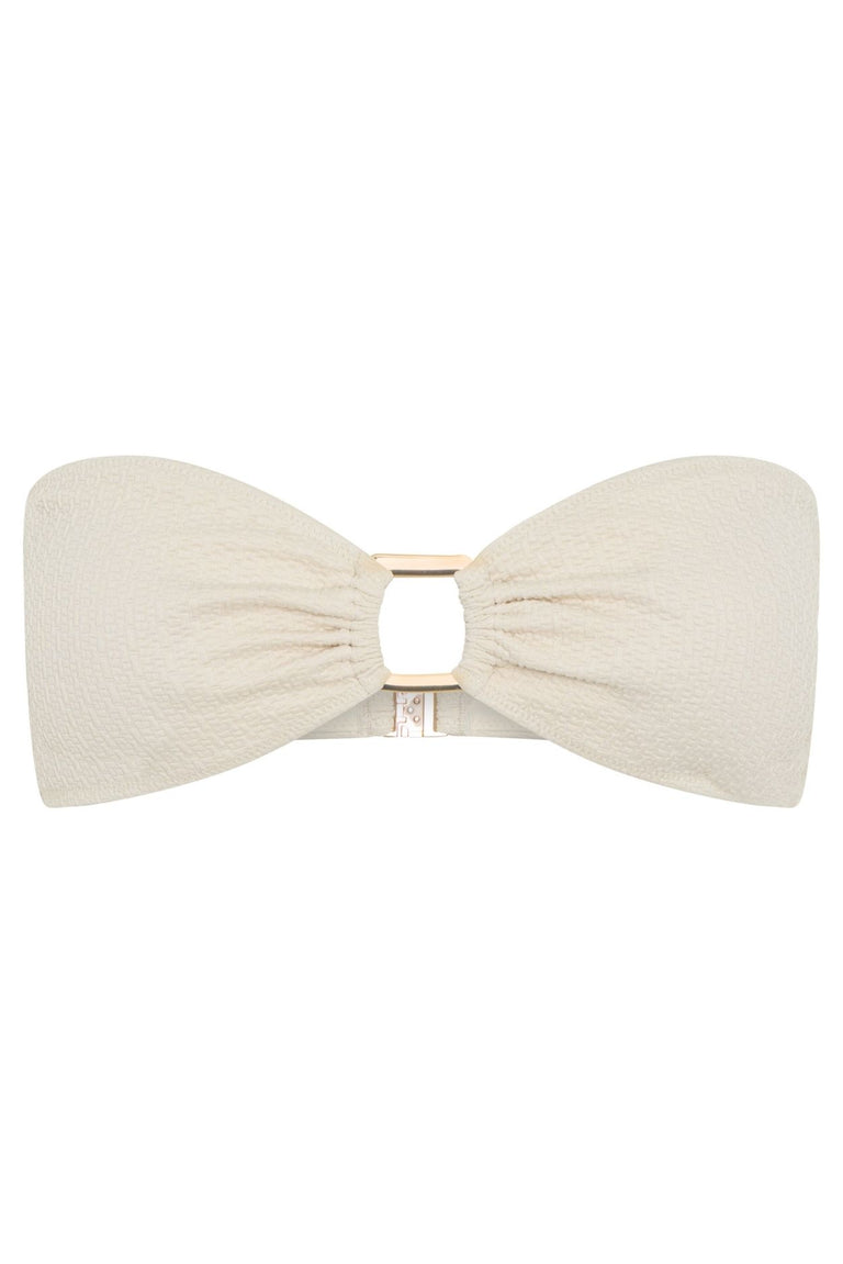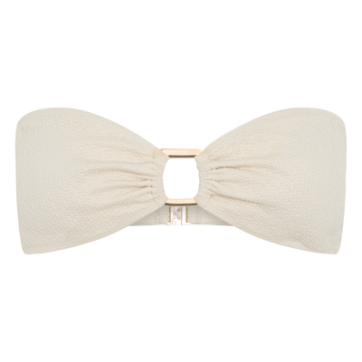Elevate your swimwear game with our Maeve Bikini Top, designed for the modern minimalist who loves a touch of glamour. A sleek, strapless silhouette with a statement gold square hardware detail at the center front, this piece combines effortless style with refined edge.